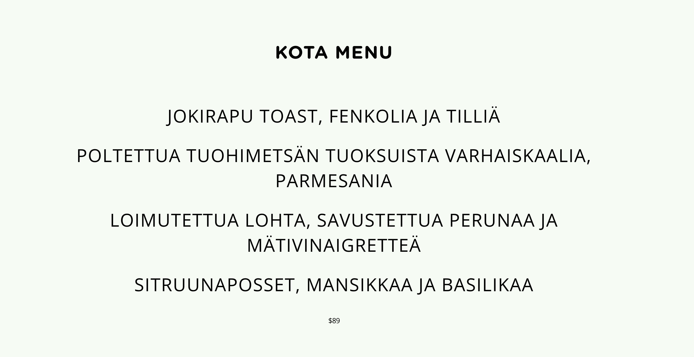 3-ruokalajin illalliskokemus kauden parhaista raaka-aineista luonnon keskellä.