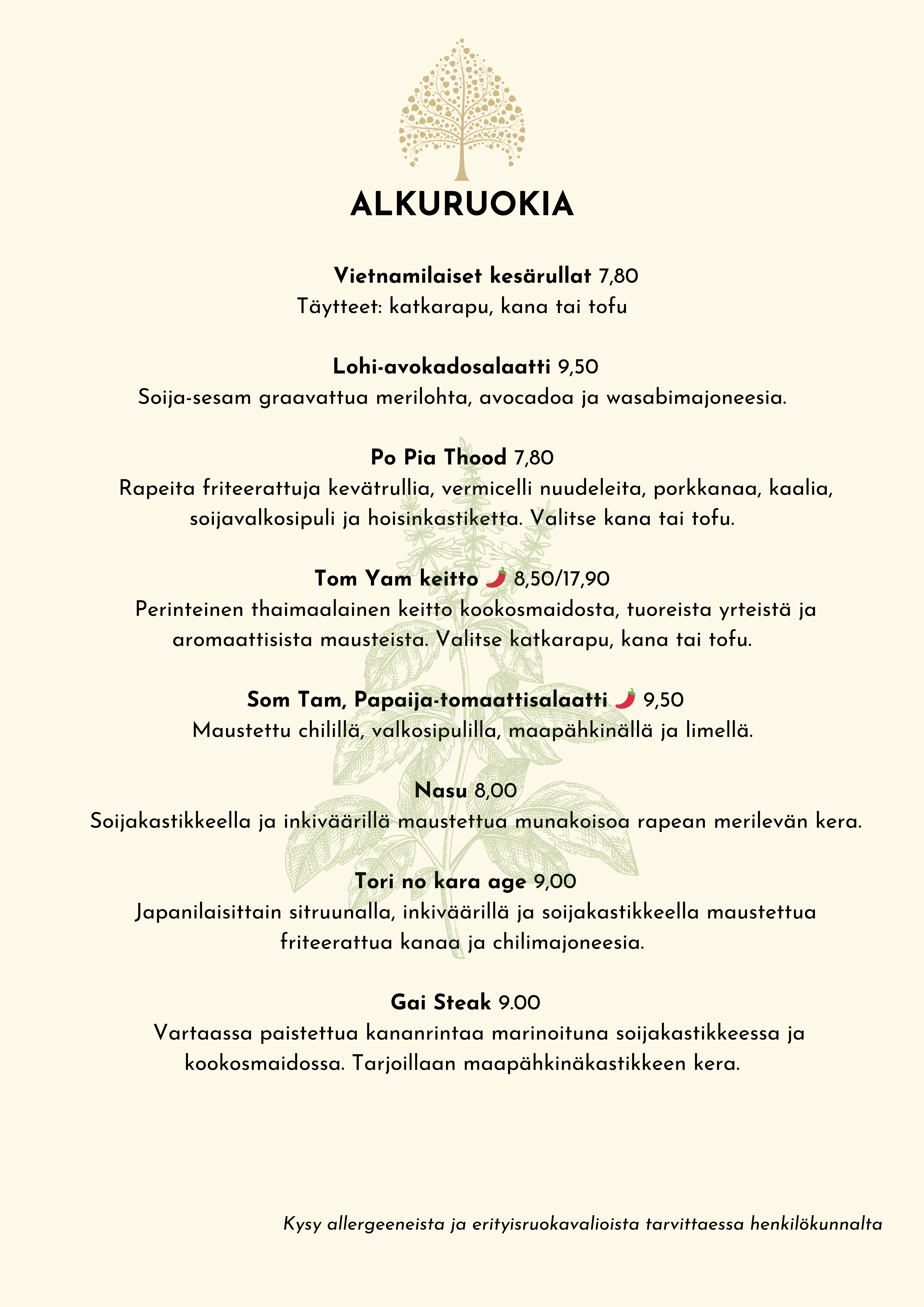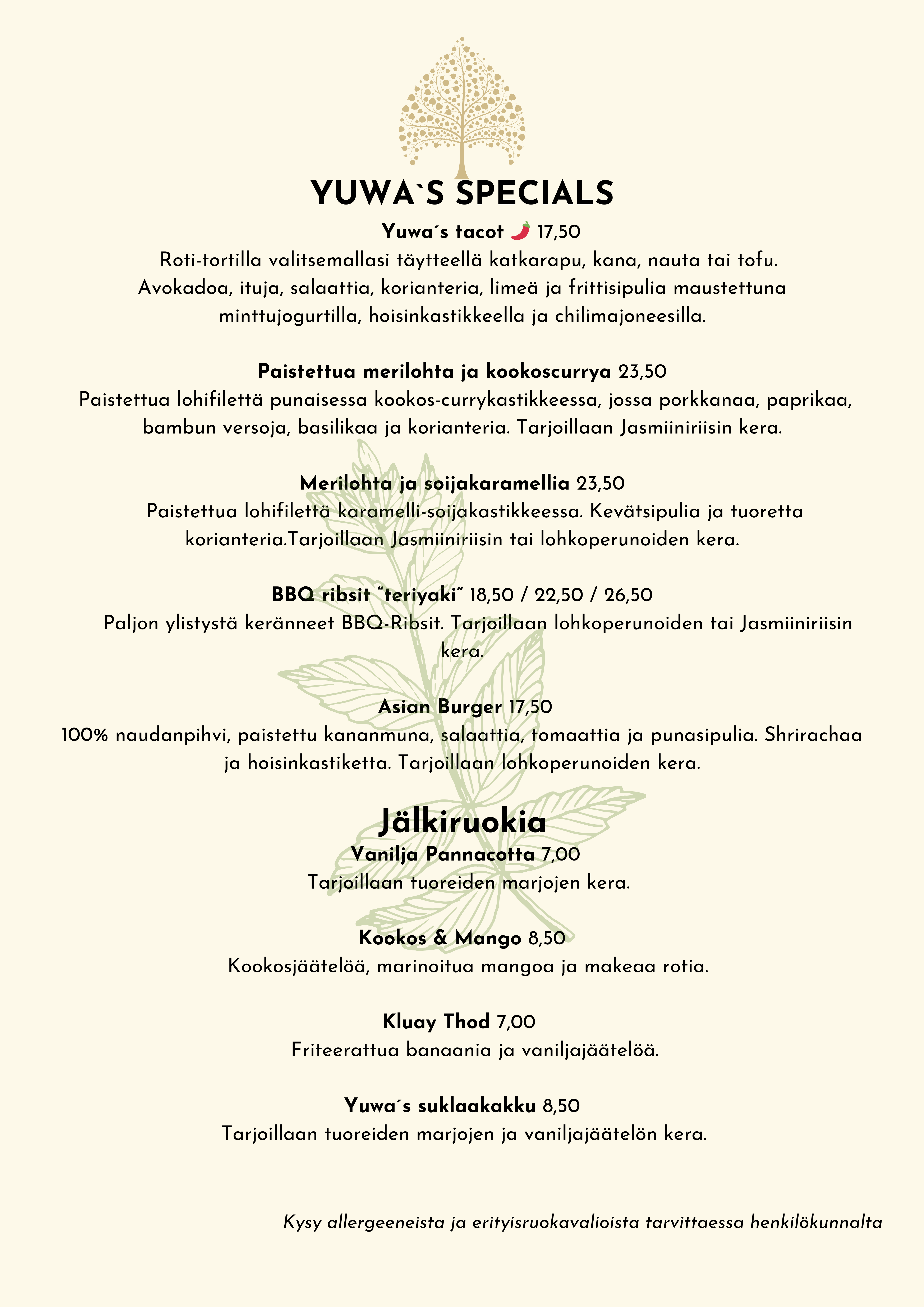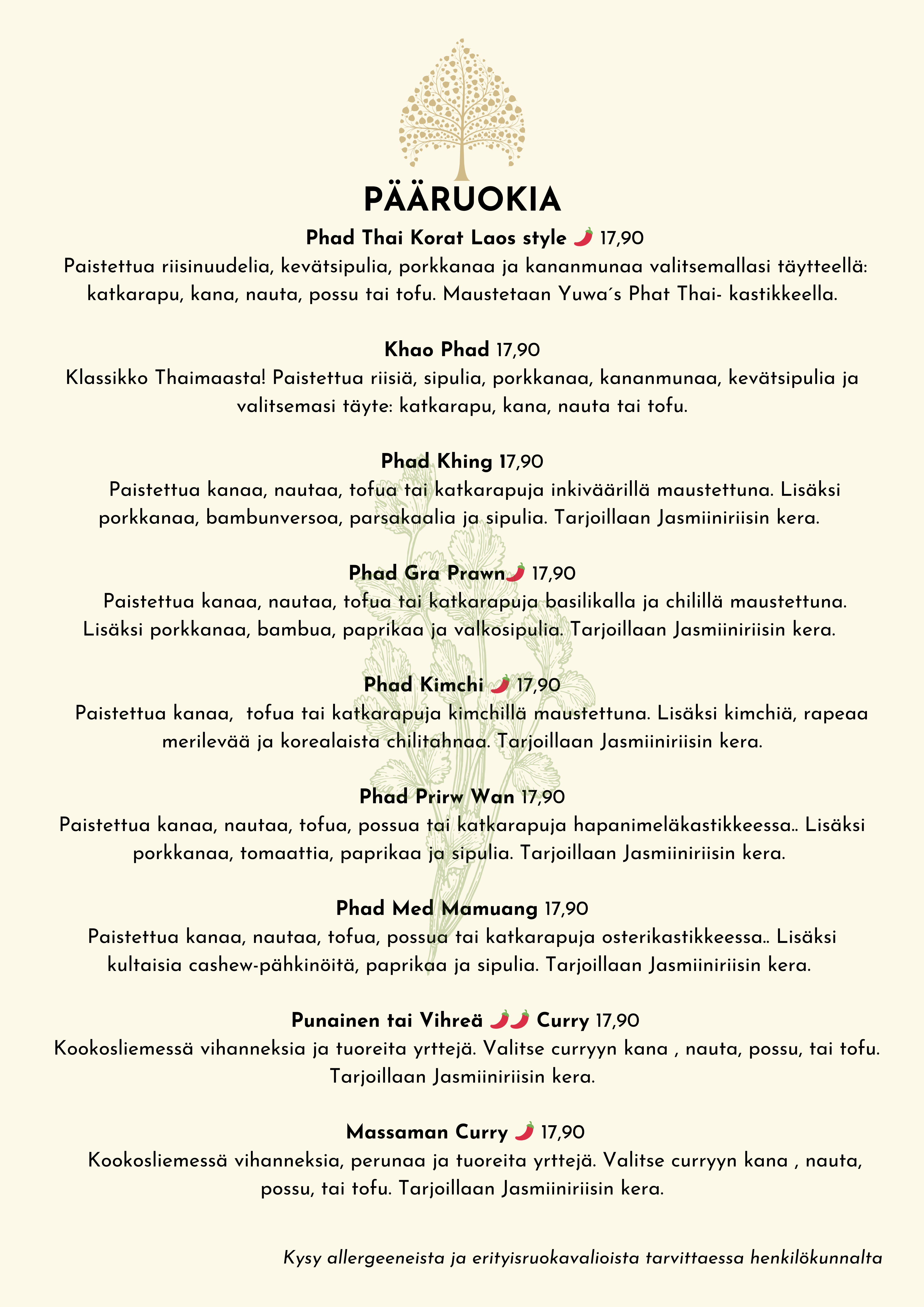 Tarjoileeko ravintola YUWA`S thaimaalainen ruokaa?